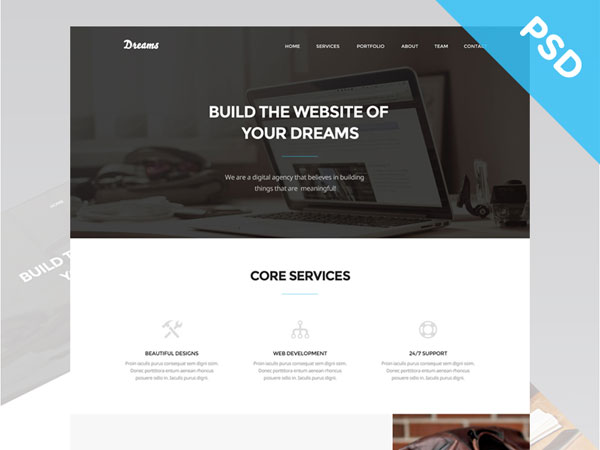 Dreams is a free PSD web template built by Example Person. Dreams is a modern one page web template designed for almost any purpose. It’s a beautiful template that’s designed with the Bootstrap framework in mind.