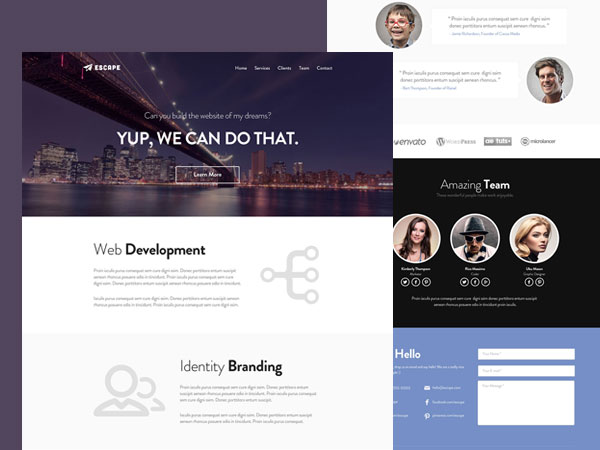Escape is a free PSD web template built by Example Person. Escape is a one page web template that was designed with agencies in mind. This template is ideal for those looking for a simple one page solution to describe your business and offer your services.